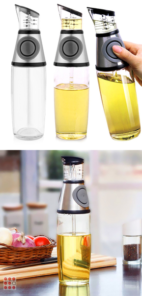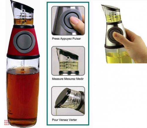 Стильный диспенсер поможет Вам добавить необходимое количество масла или уксуса ит.д. Нужно просто нажать кнопку и выбрать необходимое количество. Забудьте про измерение ложками.