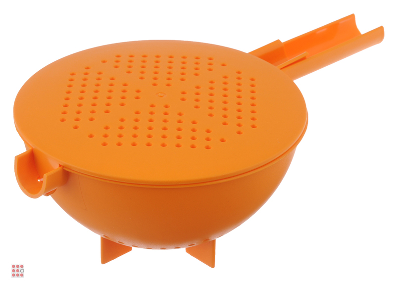 Дуршлаг с отверстиями для мойки продуктов. Прочный пластик легко моется и прослужит долгое время