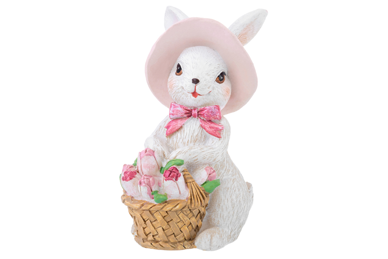 Фигурка декоративная Elan Gallery "Кролик в шляпе" размером 7,5х5х10 см способна преобразить любое помещение! Статуэтка выполнена из полирезина. Полирезин – это современный материал, который славится своей лёгкостью, устойчивостью к влаге и солнечным лучам. Он не выделяет вредных веществ и не имеет запаха. Милый кролик с бантиком на шее держит в руках корзинку с цветами. Этот интересный элемент декора принесёт в дом красоту и уют. Фигурка послужит украшением гостиной или спальни и добавит в ваш интерьер нотки индивидуальности и стиля. Превратите вашу кухню или дачу в уютное место с особой атмосферой благодаря этому сувениру! Вы можете разместить статуэтку на полке, столе или создать декоративную композицию вместе с другими украшениями. Фигурка в виде кролика станет чудесным подарком для ваших родных и близких на любой праздник. Пусть она будет символом вашей дружбы и создаст хорошее настроение взрослым и детям! /