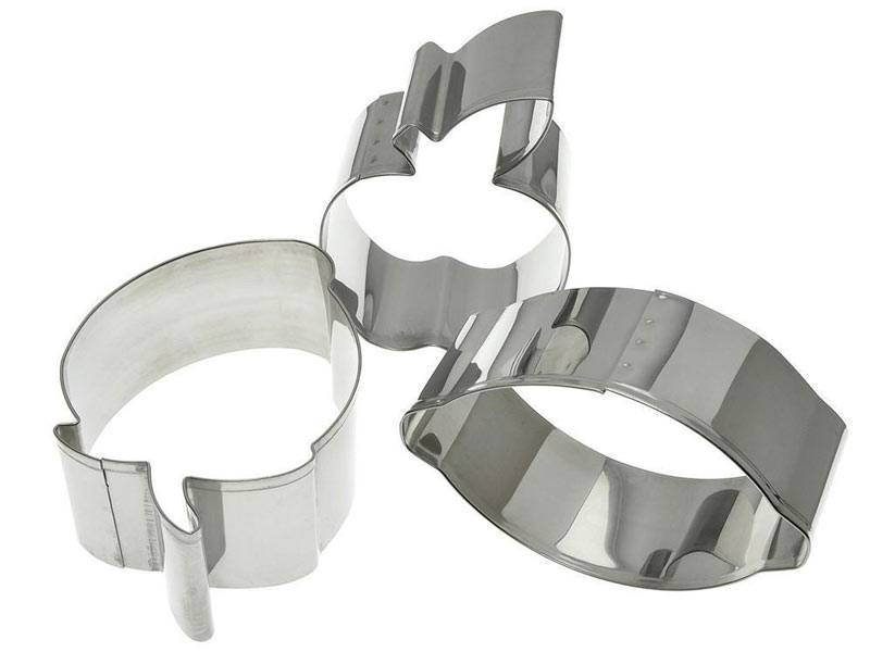Размеры: «Клубника» 9,5х7 см, высота 4 см «Лимон» 10х6,5 см, высота 4 см «Яблоко» 10х7 см, высота 4 см. Набор изготовлен из коррозионностойкой (нержавеющей) стали.Заключаем договора по 44 ФЗ, 223 ФЗ