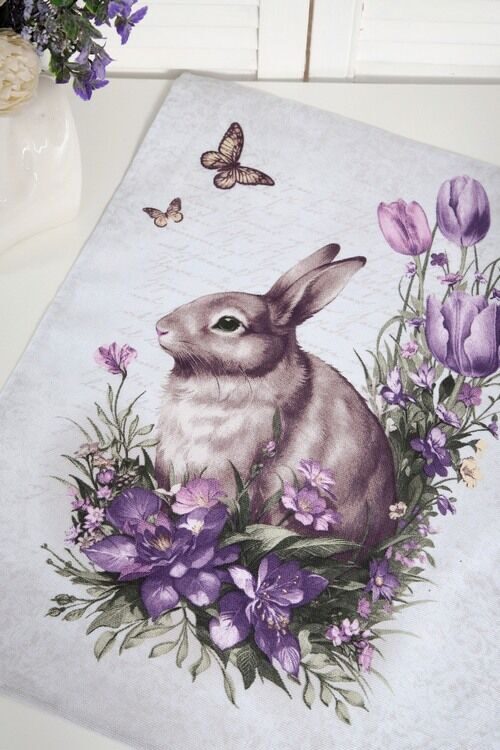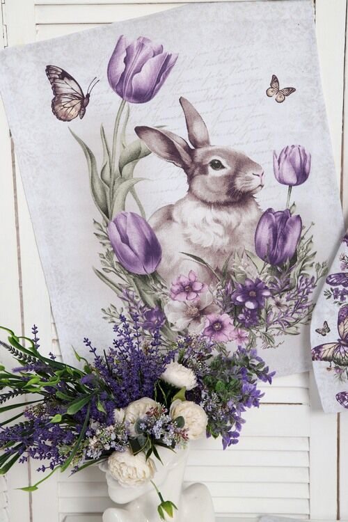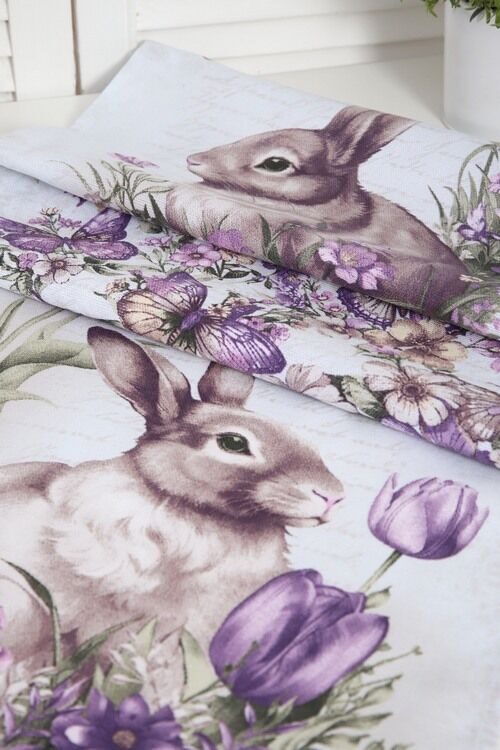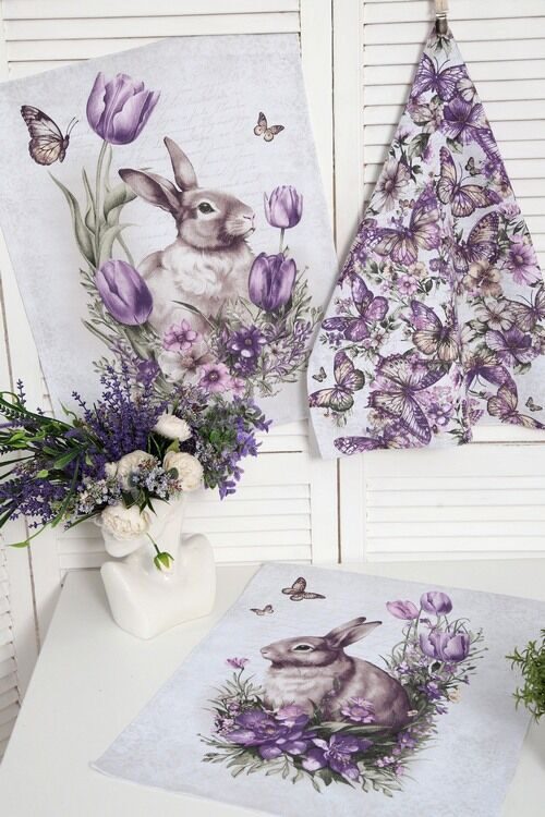 К-т полотенец "Винтажные кролики" 50*60 см. - 3 шт. рогожка хлопок 100%