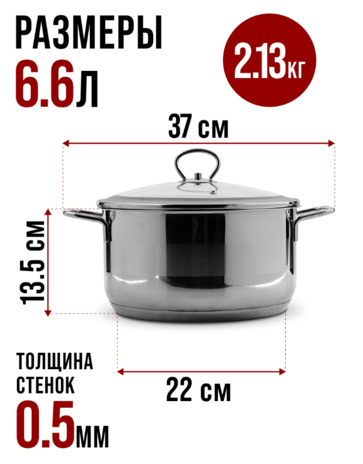 Кастрюля со стеклянной крышкой, 26см, 6,6л, нерж. Сталь (х6).