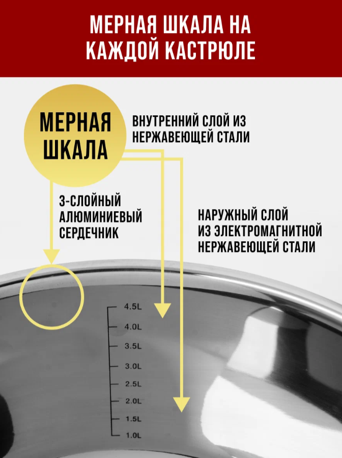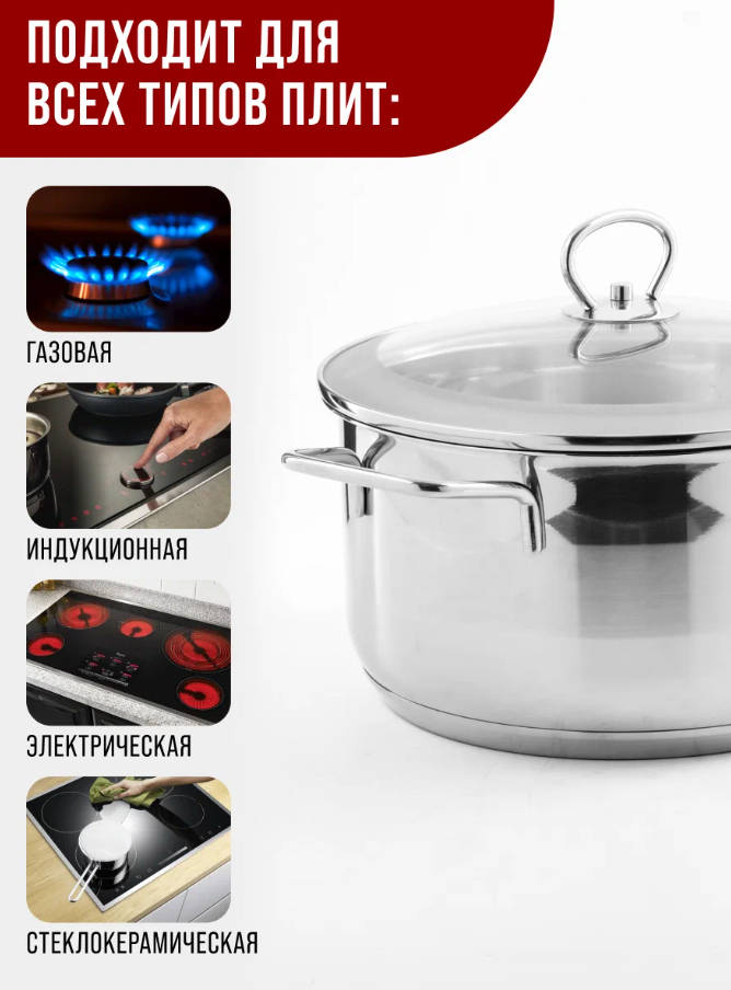 АКЦИЯ 1450р. 2300р.2010-1 Кастрюля со стеклянной крышкой, 26см, 6,6л, нерж/сталь (х6)