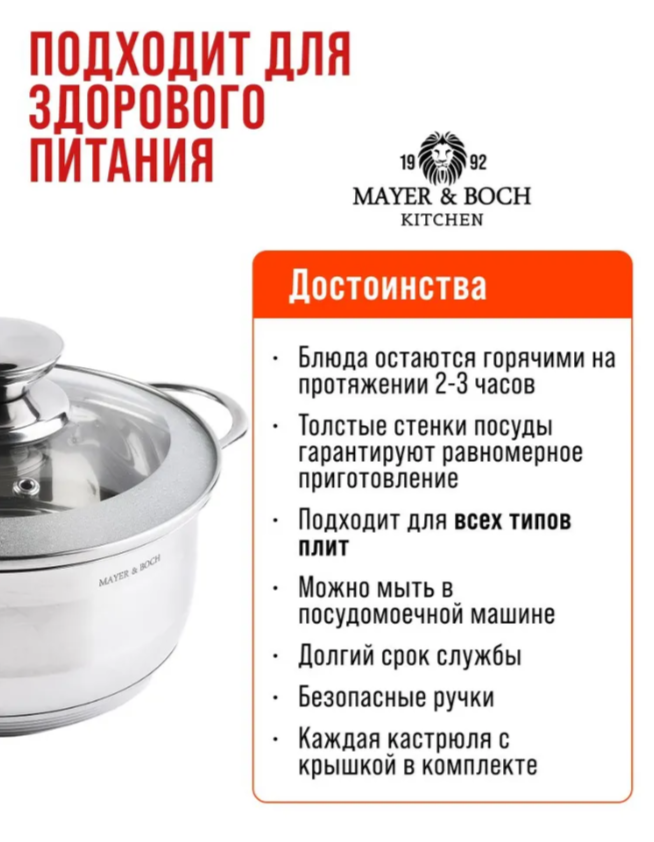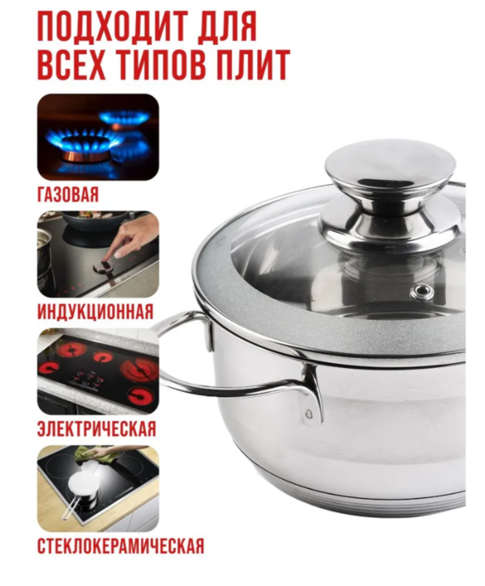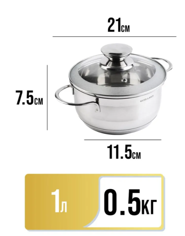 АКЦИЯ 861р. 1700р.30971 Кастрюля с крышкой 1 л 14 см нерж/ст MB (х8)