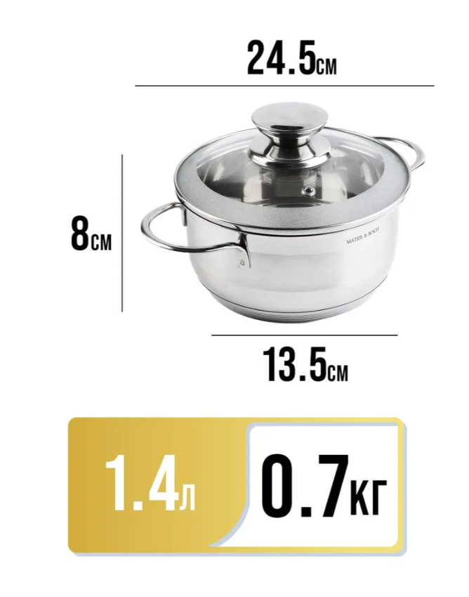 Кастрюля с кр 1,4 л 2 пр МВ (х8).