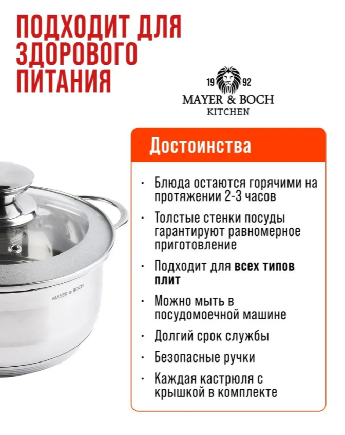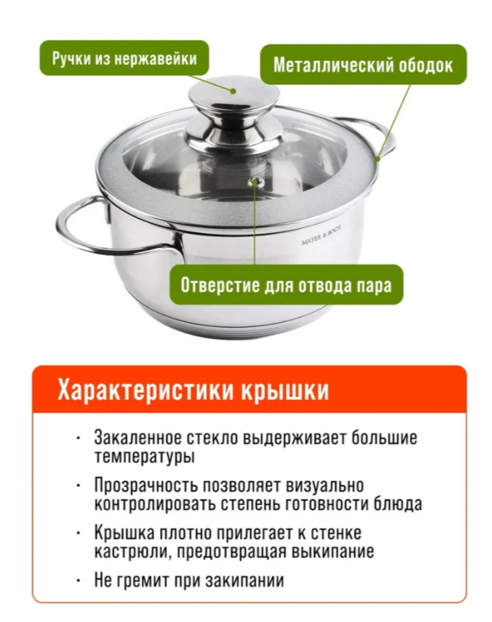 АКЦИЯ 935р. 1900р.30972 Кастрюля с крышкой 1,4 л 16см нерж/ст MB (х8)
