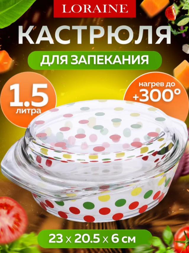 АКЦИЯ 561р. 1100р.31037 Кастрюля стекло 1,5л с крышкойLR (х6)