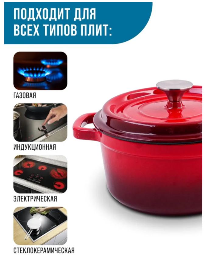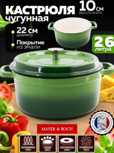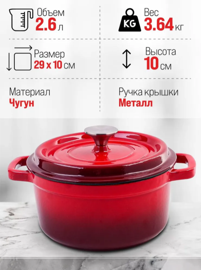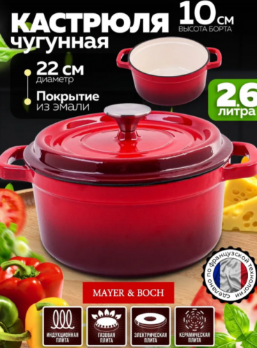 АКЦИЯ 2552р. 3500р.40627 Кастрюля чугун 2,6 л эмаль/покрытие красная MB (х2)