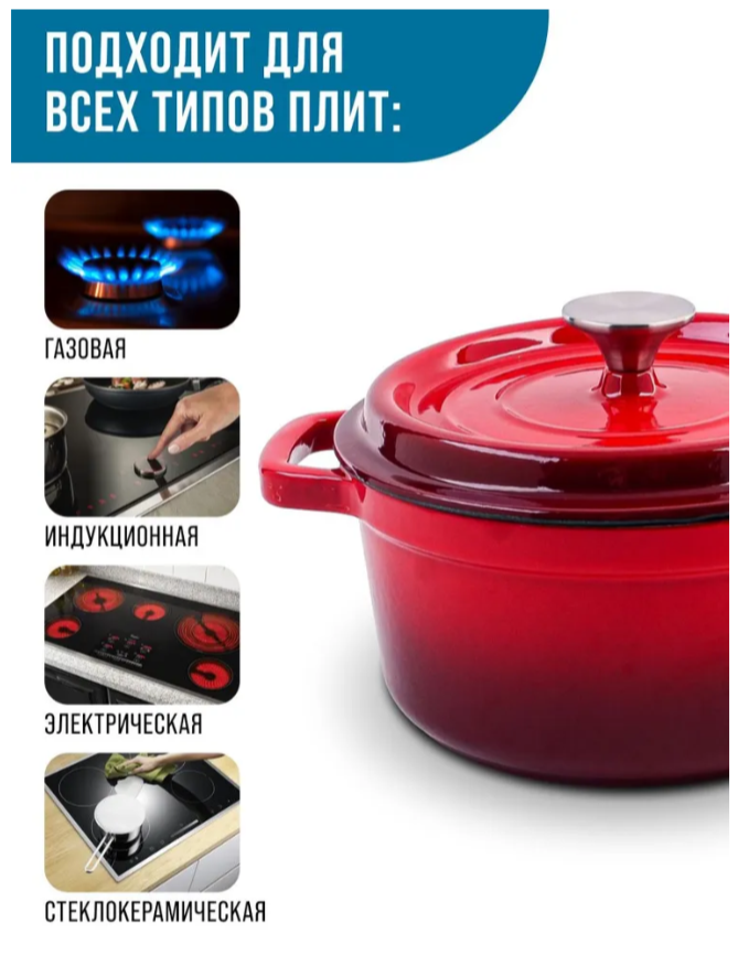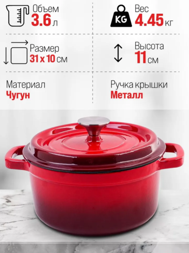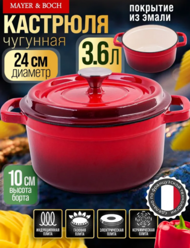 Кастрюля чугун 3,6 л эмаль/покрытие красная MB (х2).