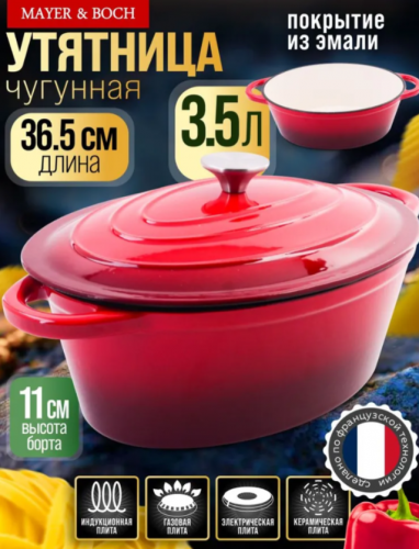 Кастрюля чугун 3,5 л эмаль/покрытие красная MB (х2).