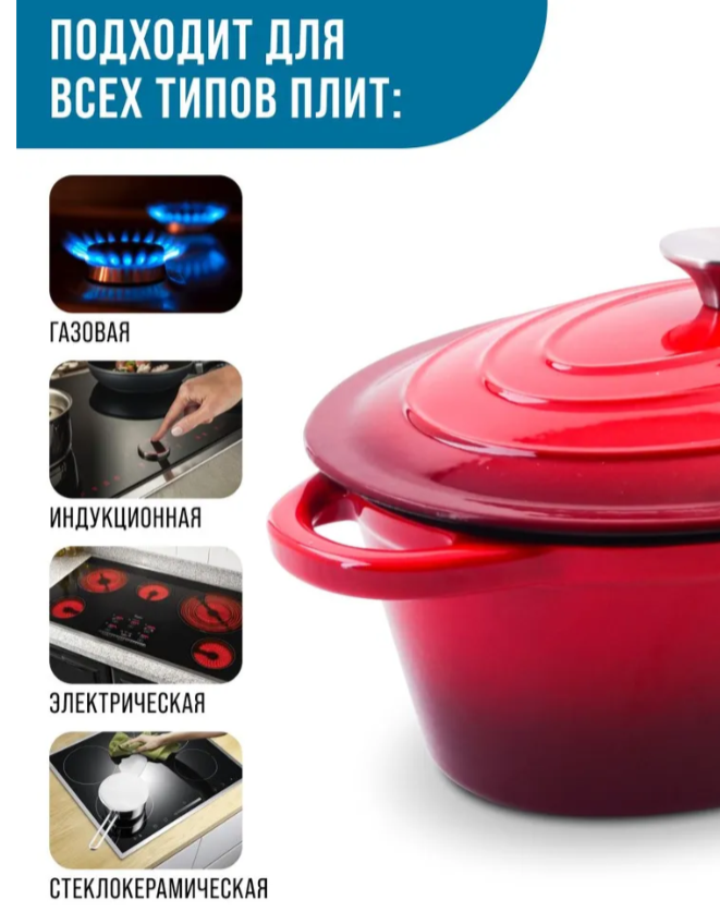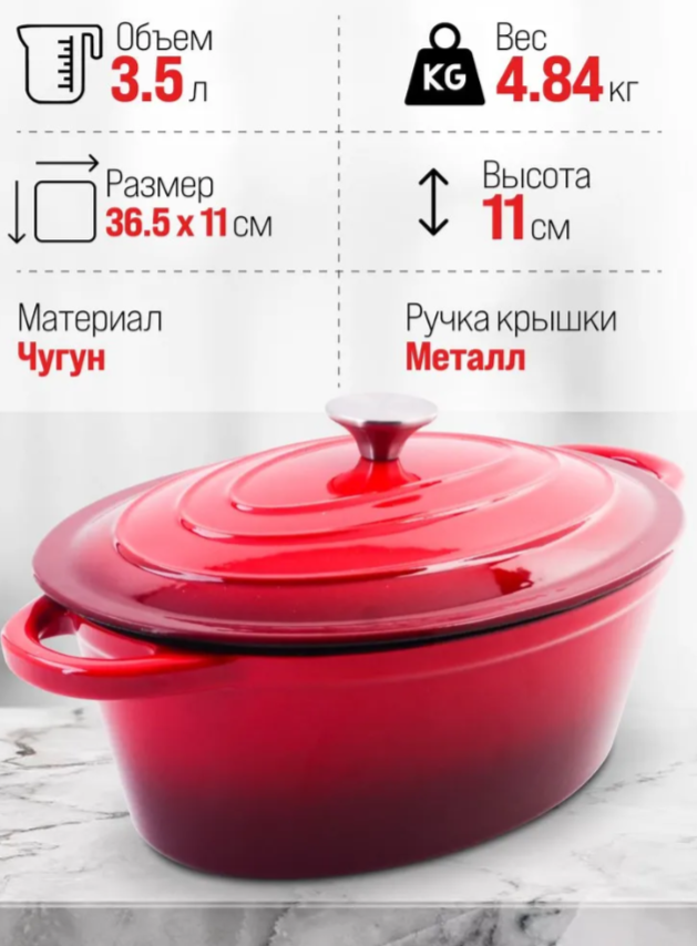 АКЦИЯ 3036р. 4500р.40639 Кастрюля чугун 3,5 л эмаль/покрытие красная MB (х2)