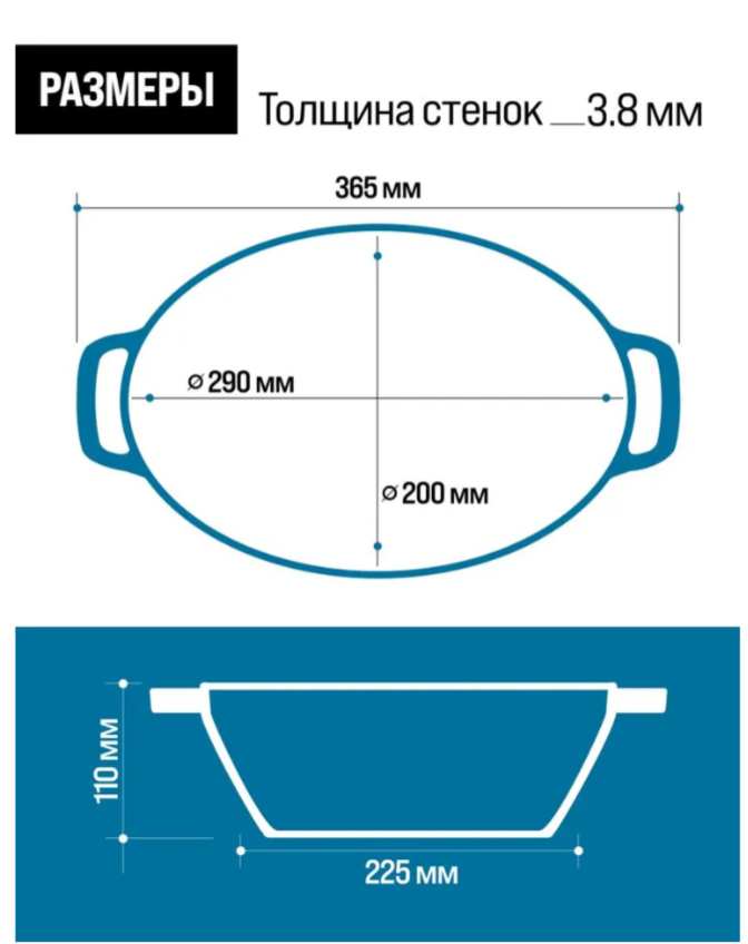 Длина и ширина по внутреннему краю: 29 х 20,5 см.