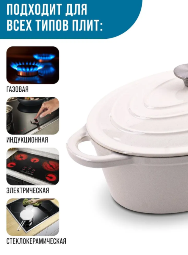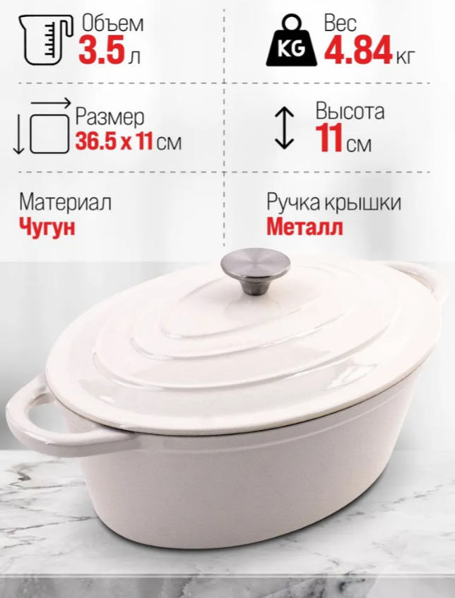 АКЦИЯ 3036р. 4500р.40640 Кастрюля чугун 3,5 л эмаль/покрытие белая MB (х2)