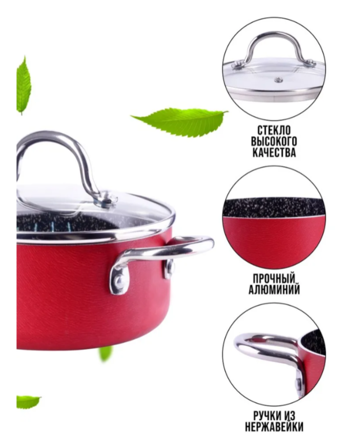 Материал: алюминий с антипригарным покрытием, нержавеющая сталь.