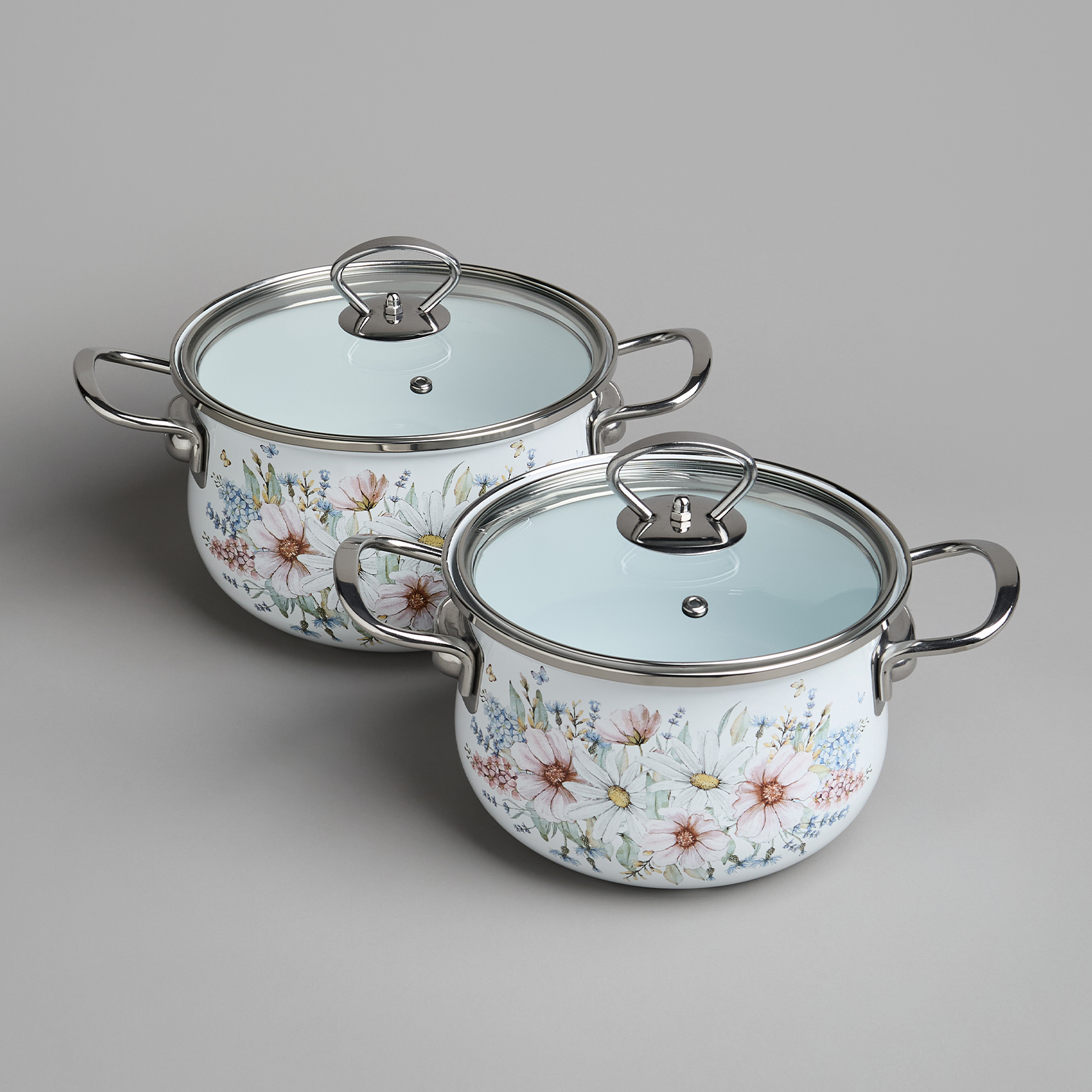 • Стильный и нежный декор эмалированной посуды украсит любую кухню.