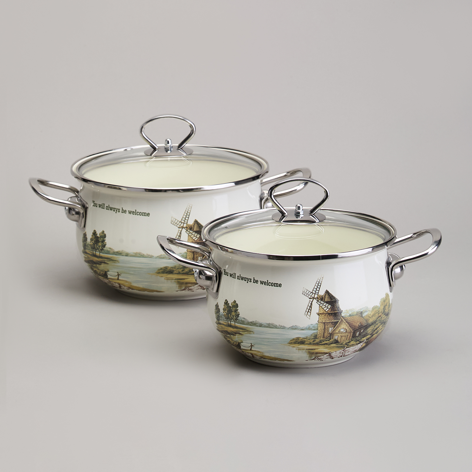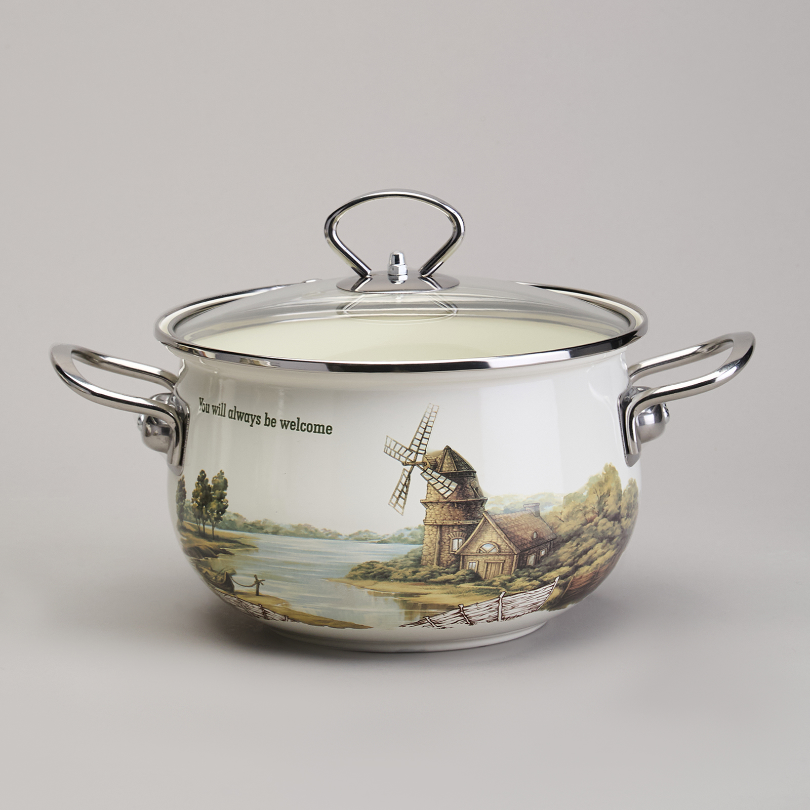 • Стильный и нежный декор эмалированной посуды украсит любую кухню.