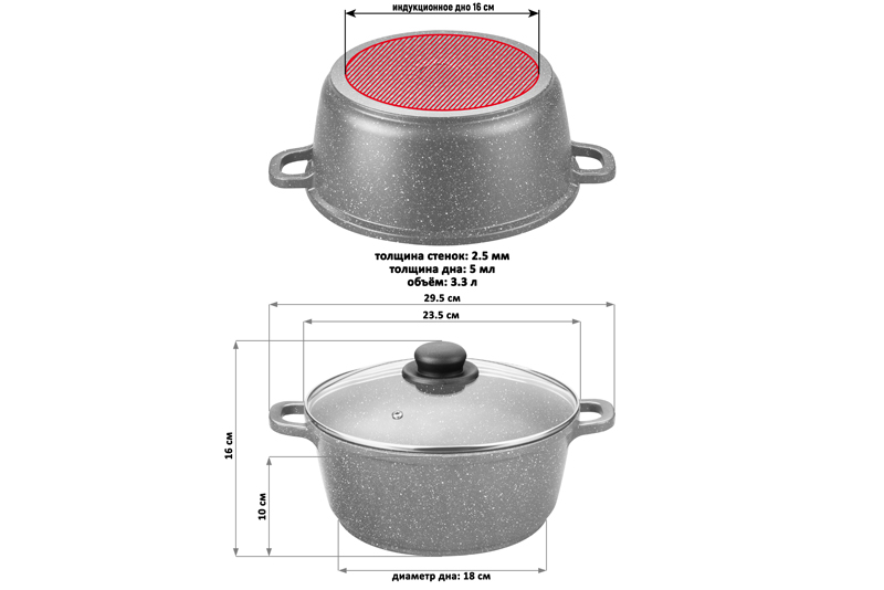 Казан-кастрюля объемом 3,3 литра серии "Гармония вкуса" с крышкой подойдет для приготовления блюд из овощей, мяса и рыбы. Выполнен из лучших материалов и разработан специально для вашего удобства: обладает антипригарным покрытием, имеет индукционное дно и эргономичную форму. Изготовлен из литого алюминия в России. Антипригарное покрытие Duramax полностью безопасно: не содержит PFOA, свинца, кадмия и любых других вредных веществ. Загрязнения на казане после готовки отмываются без усилий. Не нагревать без продуктов. Дайте посуде остыть, прежде чем помещать ее в воду. Использовать только деревянные и силиконовые лопатки. Не мыть с применением абразивных моющих средств. Использовать в посудомоечной машине только в режиме "Эко". Можно использовать в духовом шкафу без крышки при температуре до 250 градусов. При соблюдении всех рекомендаций казан-кастрюля с антипригарным покрытием гарантирует комфорт и легкость в эксплуатации!