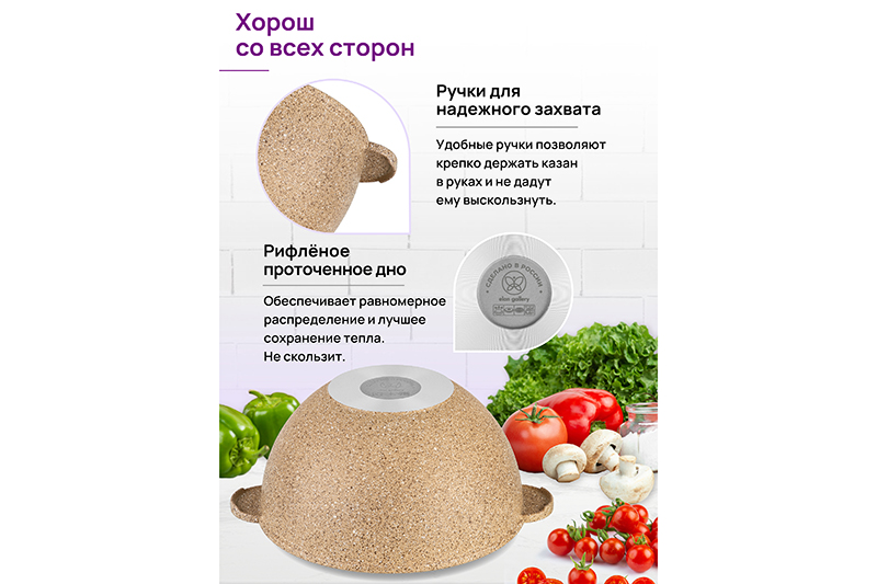 Казан 6 л ГАРМОНИЯ ВКУСА "Медовый гранит" С КРЫШКОЙ ф28, 34,5*29,5*21,5 см