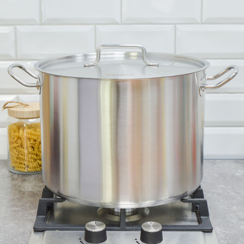 Кастрюля 15л нерж Общепит Шеф, d30см, h22см, с металлической крышкой, ТРС