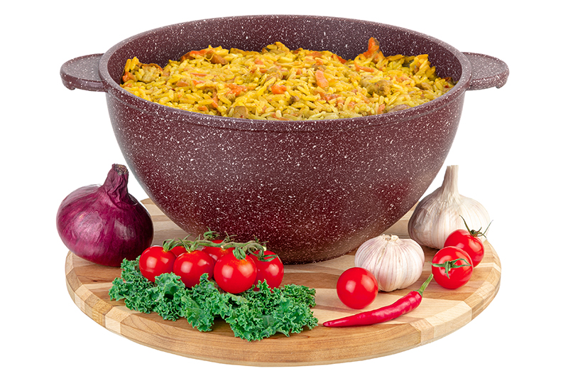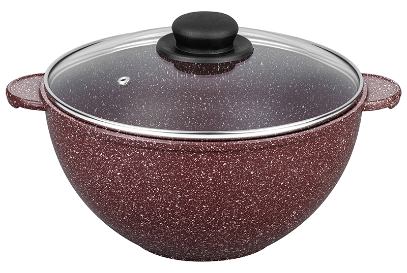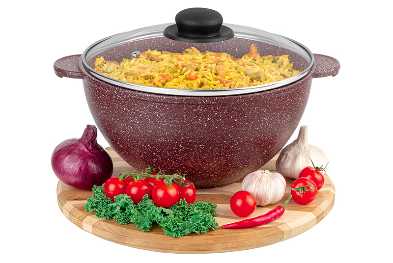 Казан "Гармония вкуса" объемом 4 литра с крышкой равномерно разогревается и распределяет тепло таким образом, что продукты в нем остаются сочными и сохраняют все свои полезные и вкусовые свойства. Казан выполнен из толстостенного литого алюминия и имеет ультрапрочное двухслойное антипригарное покрытие Cookmark. Покрытие устойчиво к царапинам и износу, полностью безопасно для здоровья и не содержит PFOA или других вредных веществ. Эксплуатация: не нагревать без продуктов. Дайте посуде остыть, прежде чем помещать ее в воду. Использовать только деревянные и силиконовые приборы. Не мыть абразивными или щелочными моющими средствами. Использовать в посудомоечной машине только в режиме "Эко". Подходит для всех типов плит, кроме индукционных. Можно использовать в духовом шкафу без крышки при температуре до 250 градусов.