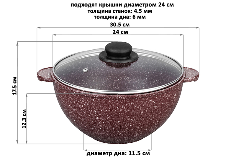 Казан 4 л ГАРМОНИЯ ВКУСА "Рубин" С КРЫШКОЙ ф24, 30,5*25,5*17,5 см