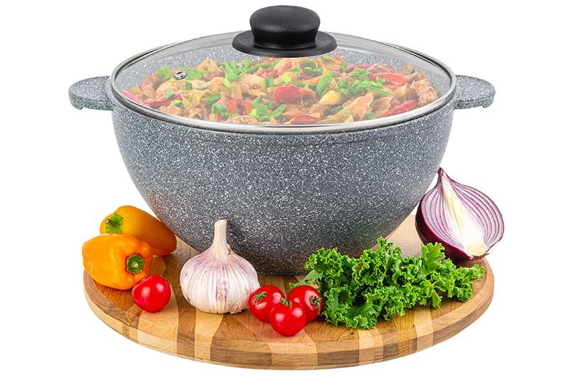 Казан 4 л ГАРМОНИЯ ВКУСА "Серый мрамор" С КРЫШКОЙ ф24, 30,5*25,5*17,5 см