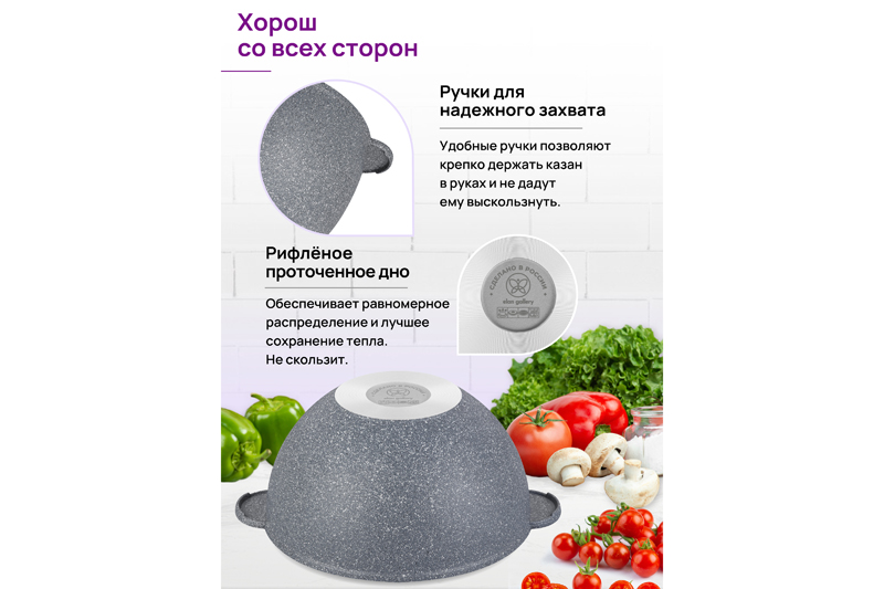 Казан 6 л ГАРМОНИЯ ВКУСА "Серый мрамор" С КРЫШКОЙ ф28, 34,5*29,5*19,5 см