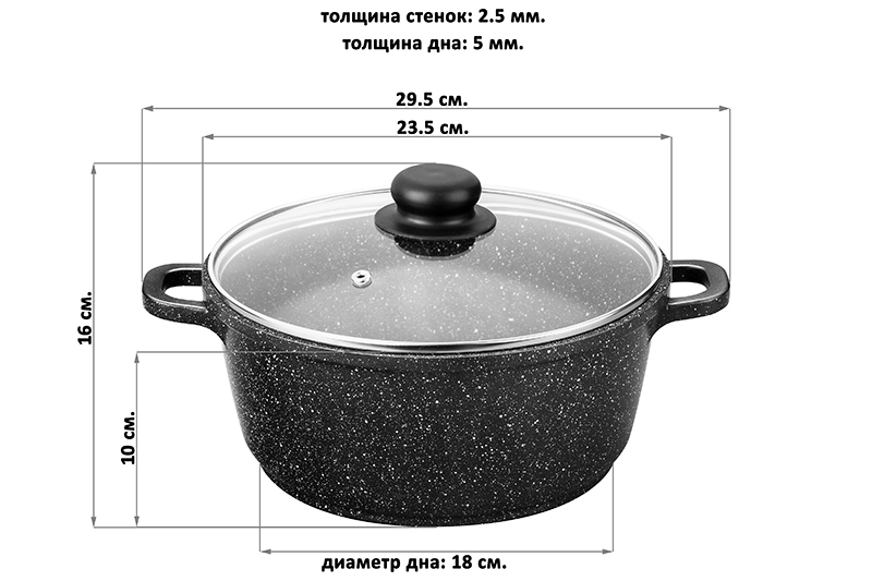 Казан (кастрюля) 3,3 л ГАРМОНИЯ ВКУСА "Черный мрамор" ИНДУКЦИЯ, С КРЫШКОЙ ф22, 29,5*23,5*16 см