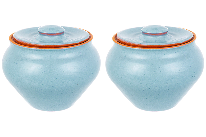 Набор 2 горшков 0,9 л 14,5*14,5*12,5 см "TerraCotta" с крышкой для запекания голубой