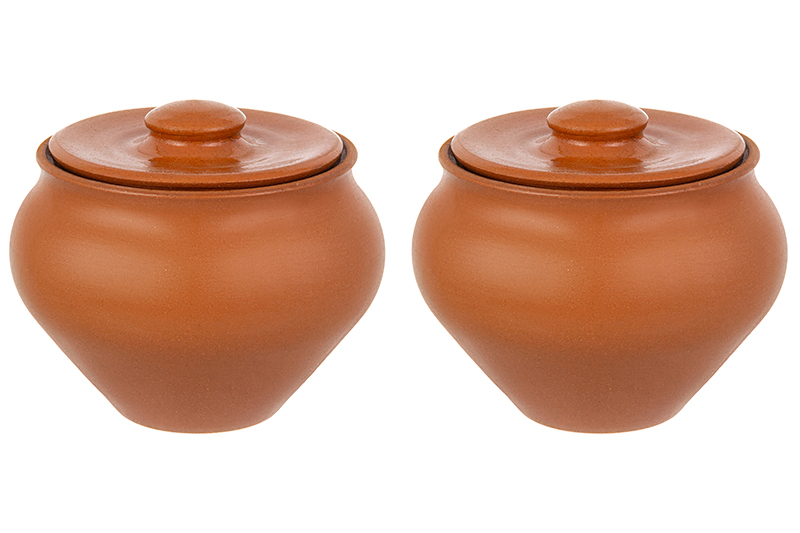 Набор 2 горшков 0,9 л 14,5*14,5*12,5 см "TerraCotta" с крышкой для запекания терракота