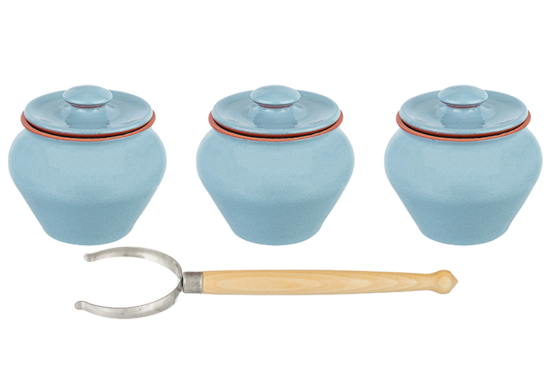 Набор 3-х горшков 600 мл 12,5*12,5*12 см "TerraCotta" с ухватом голубой