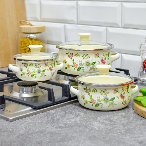 Набор кастрюль 3 предмета (0,5л, 0,8л, 1,2л) эмаль "Provence", индукция, Z-80634