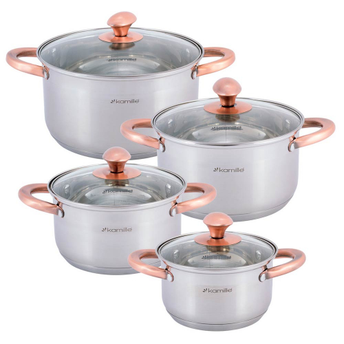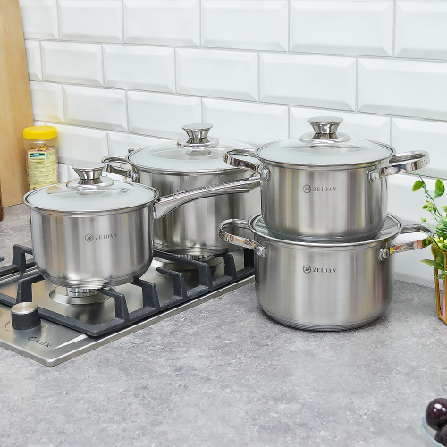 Набор кастрюль 4 предмета (1,5л, 2л, 3л, 5л) нерж, полые ручки, индукция, 4937