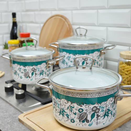 Набор кастрюль (6л, 3,7л, ковш 2л) нерж со стеклянными крышками "Vittoria"