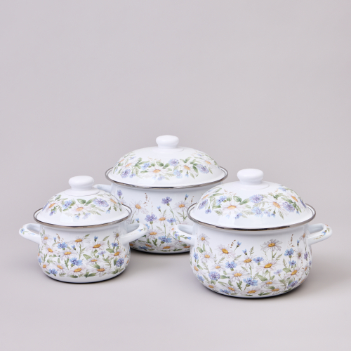 Стильный и нежный декор эмалированной посуды украсит любую кухню.