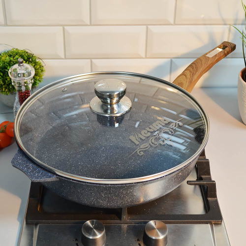 Сковорода 30см Premium blue с несъемной ручкой и стеклянной крышкой