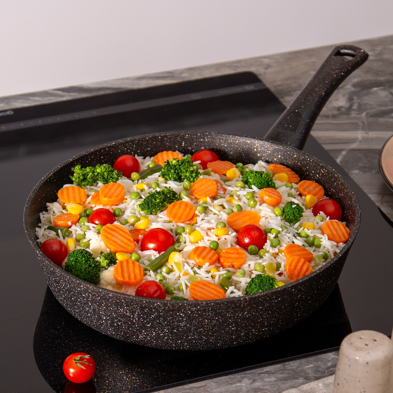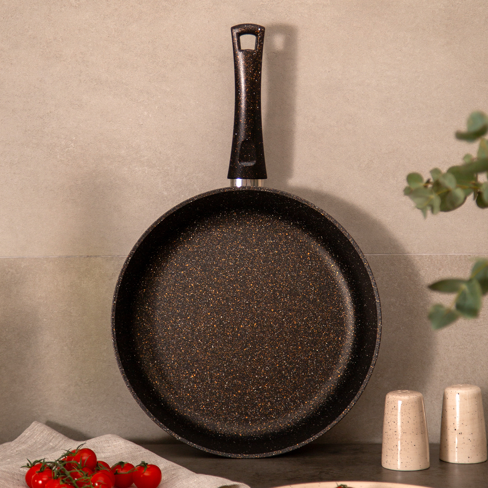 Марка AGNESS представляет посуду турецкого производителя серии Granite. Корпус сковороды выполнен из кованного алюминия. Благодаря этой технологии корпус становится более прочным, износостойким и не подвержен деформации.