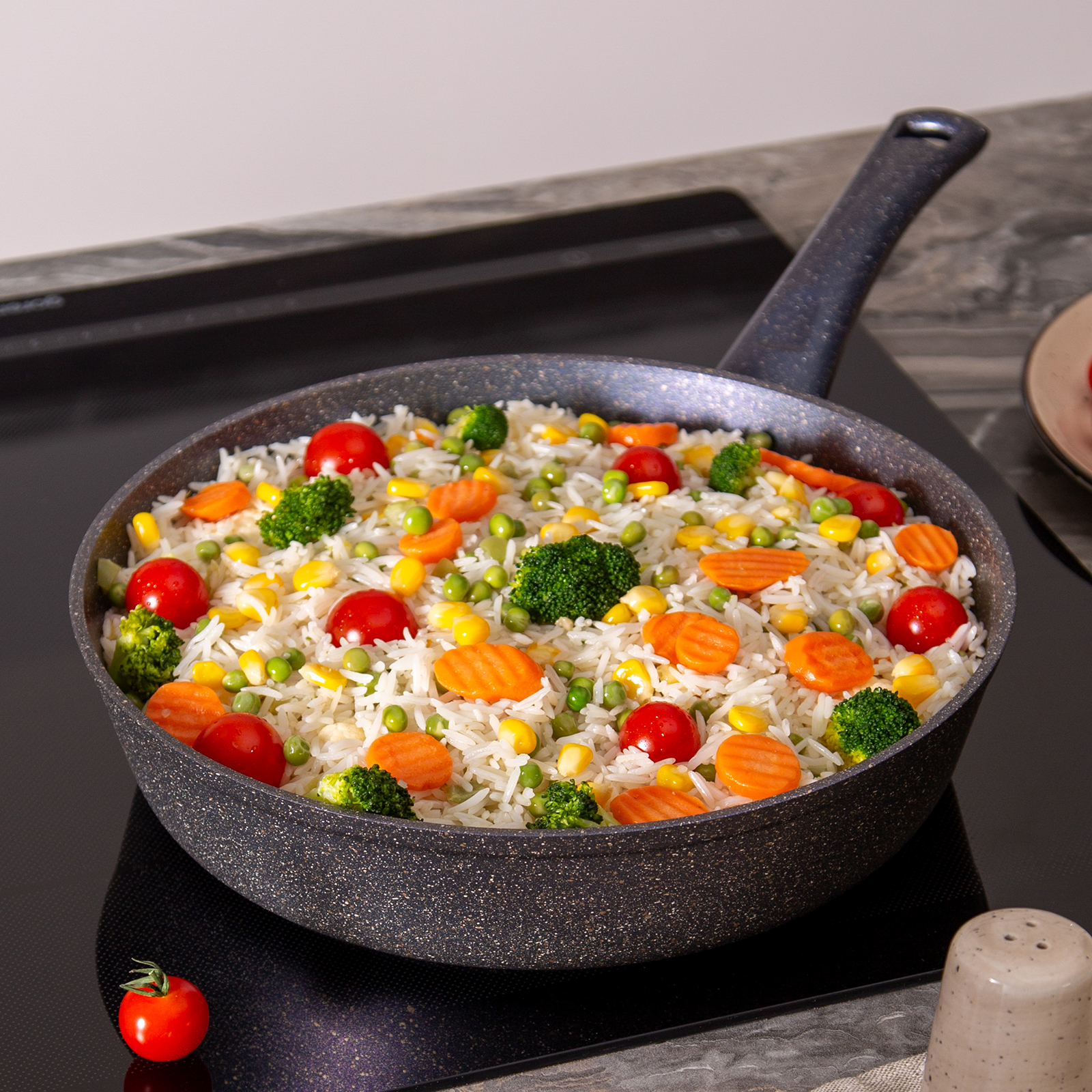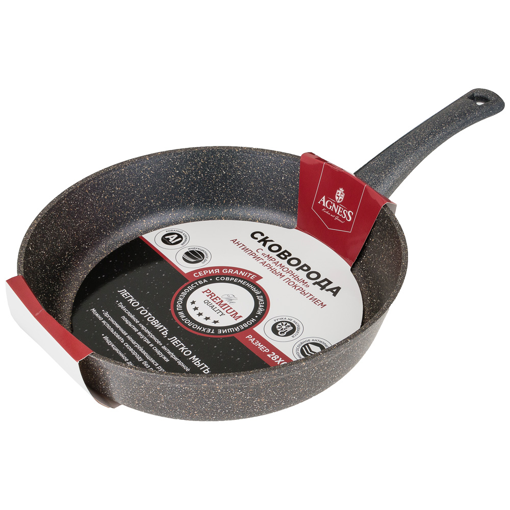 Марка AGNESS представляет посуду турецкого производителя серии Granite. Корпус сковороды выполнен из кованного алюминия. Благодаря этой технологии корпус становится более прочным, износостойким и не подвержен деформации.