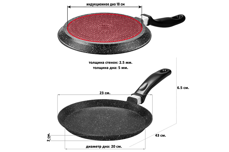 Сковорода блинная 22 см ГАРМОНИЯ ВКУСА "Черный мрамор" ИНДУКЦИЯ, н/р, 43*23*6,5 см