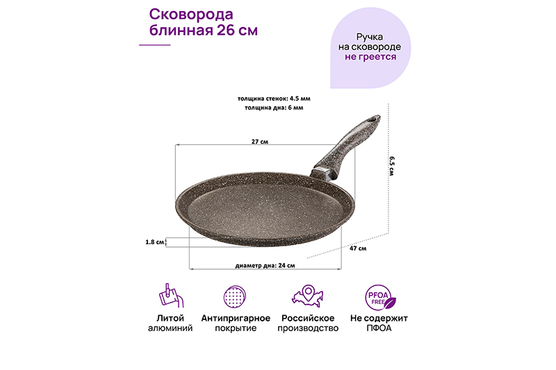 Сковорода блинная 26 см ГАРМОНИЯ ВКУСА "Коричневый опал" н/р, 47*27*6,5 см