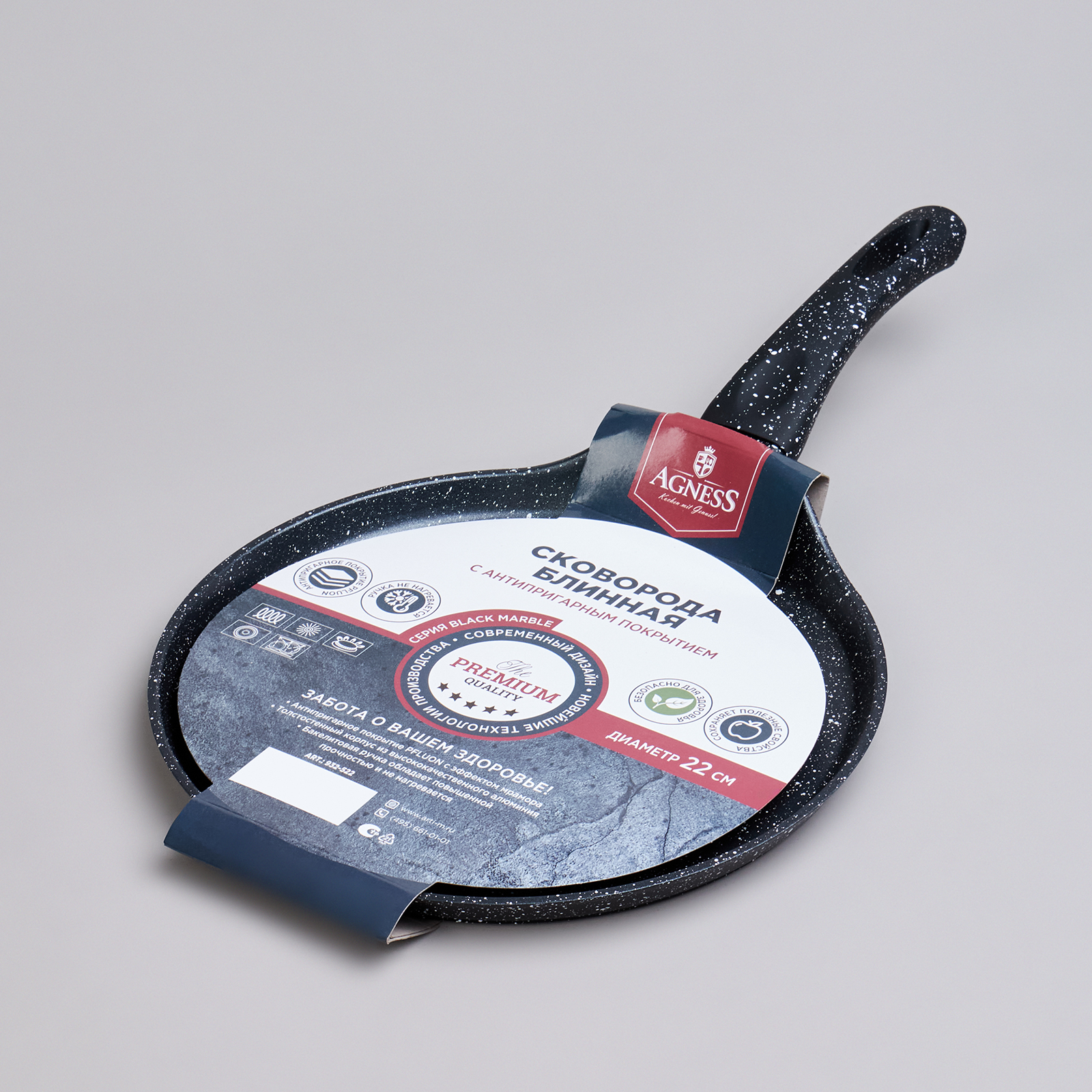 СКОВОРОДА БЛИННАЯ AGNESS С АНТИПРИГАРНЫМ ПОКРЫТИЕМ "BLACK MARBLE" - это идеальный выбор для тех, кто ценит удобство и функциональность в посуде.
