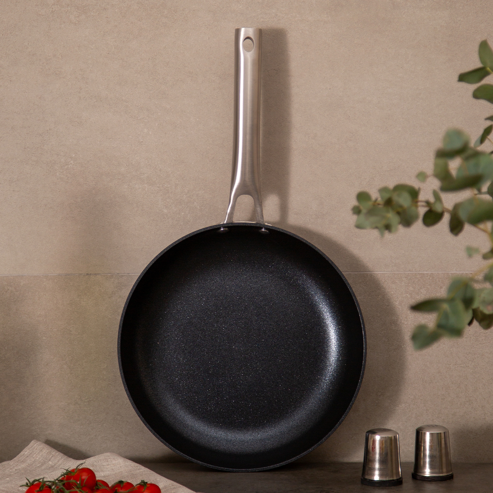 СКОВОРОДА C АНТИПРИГАРНЫМ ПОКРЫТИЕМ "CHEF"AGNESS выполнена из толстостенного прессованного алюминия 3,5мм , что гарантирует быстрый и равномерный нагрев.Сверхпрочная трехслойная структура антипригарного покрытия Daikin обеспечивает превосходные эксплуатационные качества и долгий срок службы посуды. Внешняя стенка имеет низкую теплопроводность и отлично сохраняет температуру на протяжении длительного времени, давая возможность блюду настояться и полностью раскрыться всем вкусовым составляющим. Посуда серии CHEF бренда AGNESS - это современный дизайн и передовые технологии.