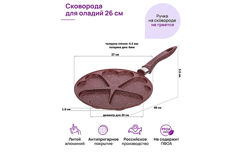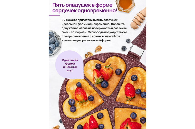 Сковорода для оладий 26 см ГАРМОНИЯ ВКУСА "Рубин" сердце н/р, 48*27*5,5 см