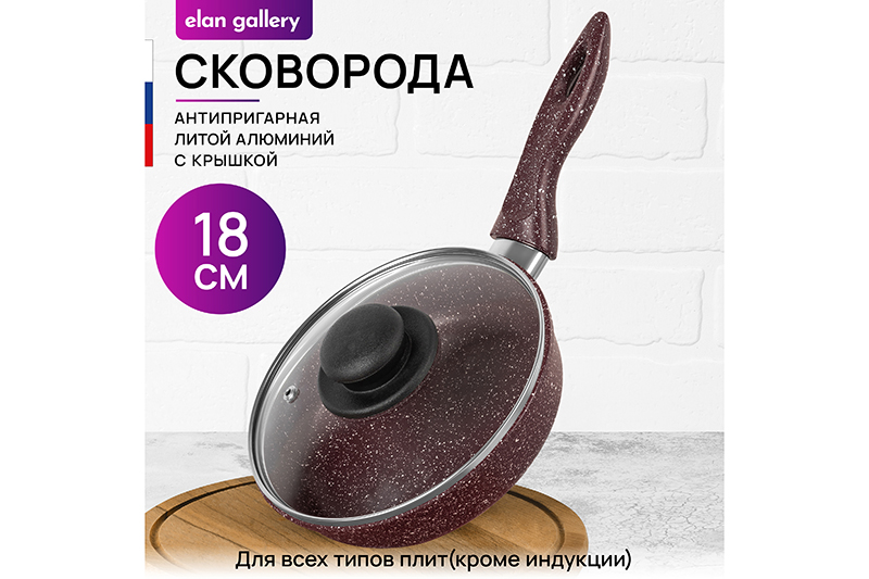 Сковорода глубокая "Гармония вкуса" 18 см с крышкой равномерно разогревается и распределяет тепло таким образом, что продукты в ней остаются сочными и сохраняют все свои полезные и вкусовые свойства. Сковорода выполнена из толстостенного литого алюминия и имеет ультрапрочное двухслойное антипригарное покрытие Cookmark. Покрытие устойчиво к царапинам и износу, полностью безопасно для здоровья и не содержит PFOA или других вредных веществ. Эксплуатация: не нагревать без продуктов. Дайте посуде остыть, прежде чем помещать ее в воду. Использовать только деревянные и силиконовые лопатки. Не мыть абразивными или щелочными моющими средствами. Использовать в посудомоечной машине только в режиме "Эко". Подходит для всех типов плит, кроме индукционных.