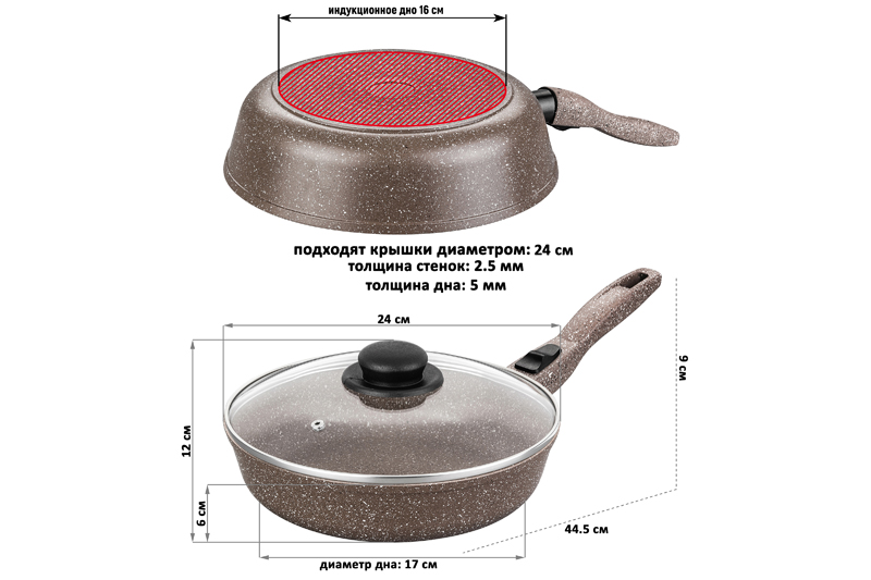 Сковорода глубокая 24 см ГАРМОНИЯ ВКУСА "Коричневый мрамор" ИНДУКЦИЯ, С КР. ф24, с/р, 44,5*25*12 см