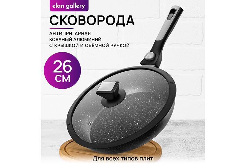 Сковорода глубокая 26 см FIERRA "Черный мрамор" С КРЫШКОЙ ф26, с/ручка, 47,5*27,5*12 см