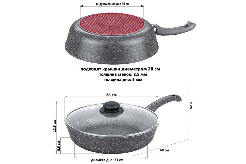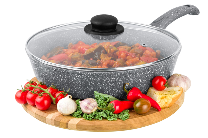 Сковорода глубокая 28 см ГАРМОНИЯ ВКУСА "Серый мрамор" ИНДУКЦИЯ, С КР. ф28, н/р, 48*29*12,5 см