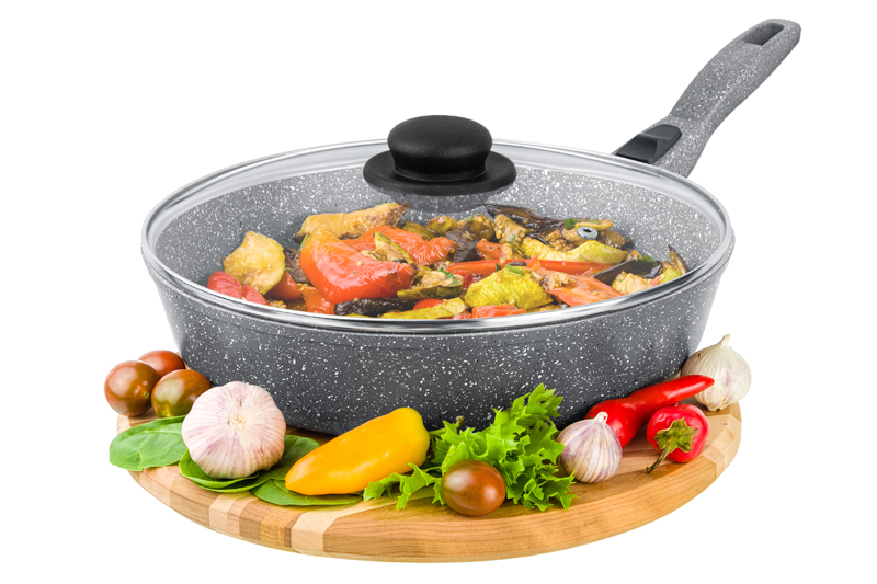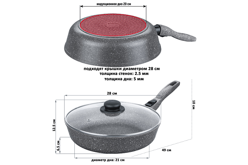 Сковорода глубокая 28 см ГАРМОНИЯ ВКУСА "Серый мрамор" ИНДУКЦИЯ, С КР.ф28, с/р, 49*29*12,5 см
