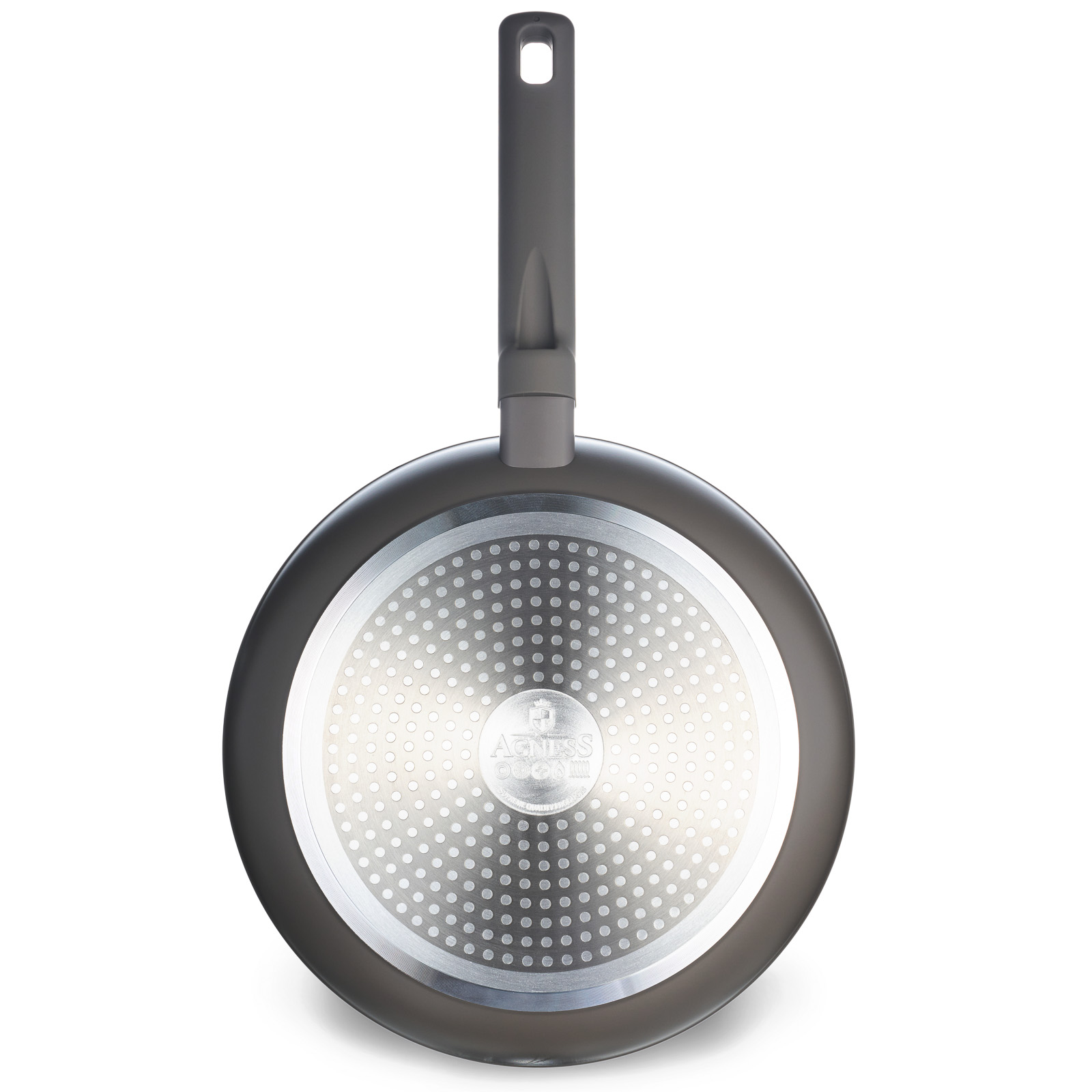 СКОВОРОДА AGNESS С АНТИПРИГАРНЫМ ПОКРЫТИЕМ "CONSTANT" - это идеальный выбор для тех, кто ценит удобство и функциональность в посуде. Одним из главных достоинств этой сковороды является УСИЛЕННОЕ АНТИПРИГАРНОЕ ПОКРЫТИЕ "CONSTANT", которое позволяет готовить без использования большого количества масла и выдерживает до 20 000 циклов истирания. Благодаря этому, продукты готовятся быстрее и сохраняют свои полезные свойства. Равномерное нагревание сокращает время приготовления и сохраняет вкус и аромат продуктов. Многослойная структура покрытия обеспечивает превосходные эксплуатационные качества и увеличивает срок службы, не содержит PFOA. Эргономичная ручка из бакелита со стильными вставками не нагревается и не плавится, обеспечивает безопасное использование сковородки в процессе приготовления пищи. Посуда AGNESS - это современный дизайн и новейшие технологии производства.