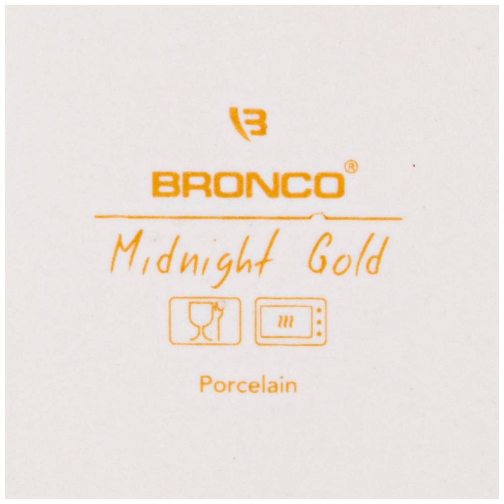 Коллекция "MIDNIGHT GOLD" ТМ BRONCO - это ультрамодная сервировка стола. Черный с золотыми брызгами и окантовкой фарфор. Глубокое матовое покрытие. Каждый предмет коллекции уникален. Тарелки в виде форм для запекания, сковородок, чугунков, элементы поверхности гриль на дне изделий - все это делает Ваш стол неповторимым! Посуда прошла сертификацию. Безопасна для контакта с пищевыми продуктами. С осторожностью использовать изделия в посудомоечной машине и микроволновой печи по причине возможного повреждения золотого декоративного покрытия. Рекомендуется применять мягкие средства для мытья в посудомоечной машине.